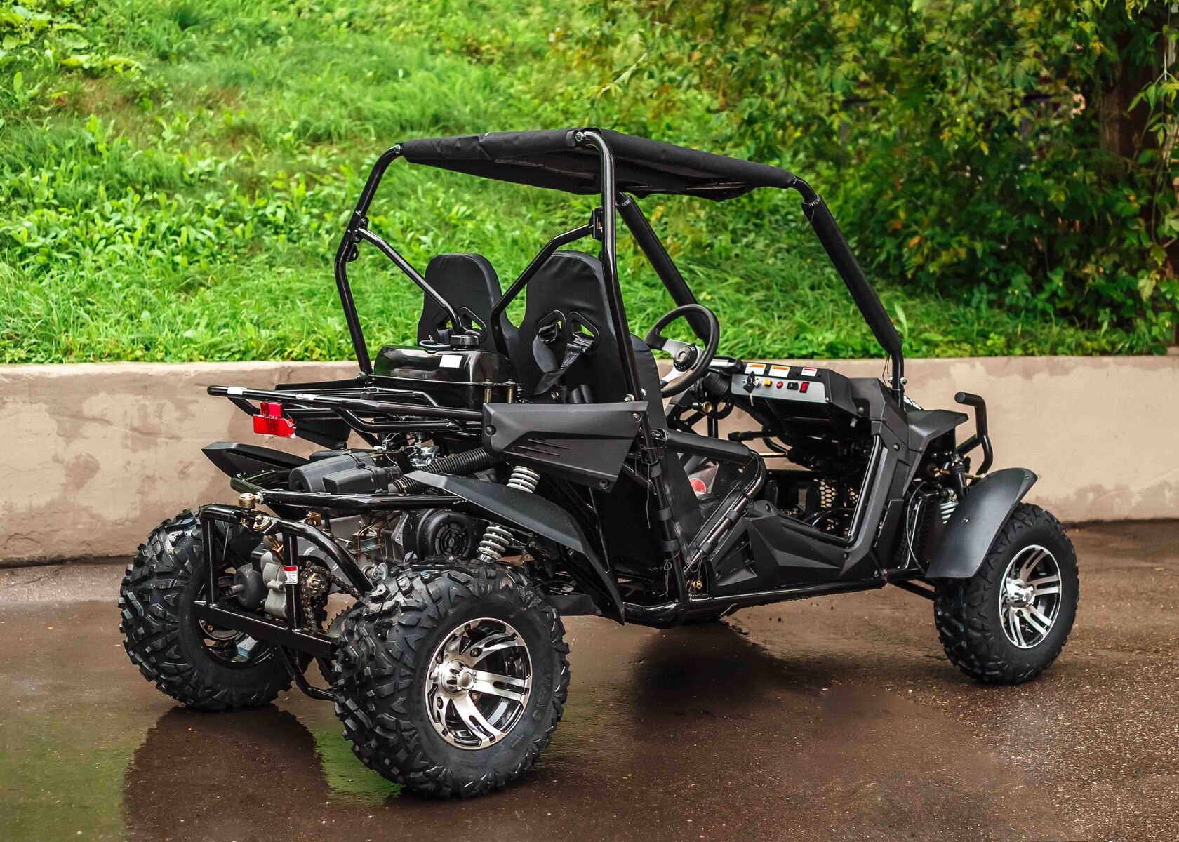Новинка 2020 года - малокубатурный багги К5! Незабываемый активный отдых обеспечен всей семье.Уникальный, современный дизайн порадует глаз. Малый вес, габариты и фантастическая управляемость даст больше возможностей для динамичных прохватов по сухому грунту. Дорожный просвет 26см и колеса 10 радиуса позволят проверить себя и технику на бездорожье. Ватерлиния на уровне 30см открывает дорогу к водным преградам. А настраиваемая подвеска и шарнирное крепление подрамника сделает ваш отдых еще более приятным, даже если вы отправитесь в многочасовое путешествие.Усиленный каркас обеспечит большую безопасность, дополнительная защита ног лучше защитит от грязи, тканевая крыша даже в базовой комплектации сохранит голову в чистоте. В минибагги с двигателем 180 куб.см будет комфортно и детям от 10-12 лет и взрослым. Комфортно расположиться в багги может человек с ростом до 195 см.Особенности комплектации: