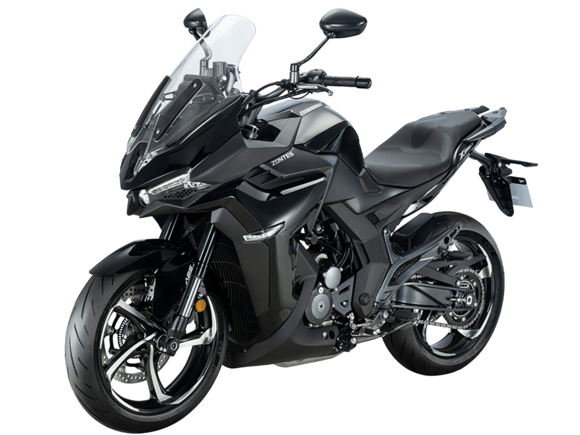 Мотоцикл ZONTES ZT350-X – турист со стремительным современным дизайном. Хорошо подходит как для повседневных поездок по городу, так и для покорения дальних маршрутов.Силовая установка представлена одноцилиндровым 4-тактным двигателем ZT184MP с 4 клапанами и 2 верхними распредвалами. Двигатель имеет объём 348 см³ и обеспечивает мощность в 39 л.с. Оснащён инжектором BOSCH и системой жидкостного охлаждения. Механическая коробка передач имеет 6 ступеней и схему 1-N-2-3-4-5-6. Запуск двигателя осуществляется с помощью бесключевого доступа.Ёмкость топливного бака 19 литров.Колёса представлены литыми алюминиевыми дисками диаметром 17 дюймов. На мотоцикл установлены датчики давления в шинах, показатели от которых выводятся на приборную панель. Для подвески спереди используется телескопическая вилка, сзади – моноамортизатор. Гидравлические дисковые тормоза произведены испанской компанией J.JUAN, входящей в холдинг BREMBO.Для освещения используется яркая LED-оптика, а приборная панель представлена цифровым дисплеем. Имеется 2 USB-порта.Габариты мотоцикла 2055х795х1330 мм. Колёсная база 1380 мм. Высота по седлу 795 мм. Вес 169 кг.