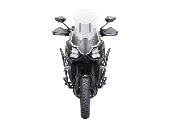 Мотоцикл ZONTES ZT703-F Tour 19/17 2025 – универсальный турэндуро, который подойдёт как для городских поездок, так и динамичных прохватов по грунту благодаря производительной подвеске. Узнайте, что такое настоящее наслаждение путешествием!Силовая установка представлена 3-цилиндровым 4-тактным двигателем объёмом 699 см³ с 4 клапанами на каждом цилиндре и 2 верхними распредвалами. Двигатель способен развивать мощность до 97,2 л.с. при 10 000 об/мин и высокий крутящий момент 76 Н·м при 7500 об/мин, что позволяет развивать большую скорость и с лёгкостью преодолевать трассы со сложным рельефом. Соотношение диаметра цилиндра и хода поршня 70х60,6 мм. Степень сжатия 13:1. Может работать в 2 режимах: ECO и SPORT. Запуск двигателя осуществляется с помощью бесключевого доступа. Установлена алюминиевая защита.Жидкостная система охлаждения эффективно поддерживает оптимальную температуру двигателя. На мотоцикл установлена 6-ступенчатая коробка передач, оснащённая квик-шифтером для переключения передач без использования рычага сцепления.В конструкции мотоцикла используется пространственная алюминиевая рама. Спереди и по бокам картера установлена металлическая защита двигателя. Выхлопная система оснащена стильным глушителем. Ёмкость топливного бака 22 литра.На мотоцикл установлены спицованные бескамерные колёса диаметром 19 дюймов спереди и 17 дюймов сзади. Подвеска изготовлена итальянским производителем MARZOCCHI. Спереди используется телескопическая вилка перевёрнутого типа с ходом 180 мм. Сзади установлен моноамортизатор с ходом 180 мм. Оба компонента регулируются.Дисковые гидравлические тормоза произведены компанией J.JUAN, входящей в холдинг BREMBO. Спереди используется двойной диск 310 мм с 4-поршневыми суппортами, а на заднем колесе расположен диск 260 мм с однопоршневым суппортом. Мотоцикл также оснащён 2-канальной ABS-системой с возможностью отключения, а также настраиваемой противобуксовочной системой.На мотоцикле используется яркая LED-оптика с дополнительным светом и многофункциональная приборная TFT-панель, положение которой можно регулировать. Рычаги тормоза и сцепления можно регулировать. Руль оснащён функцией подогрева и защитой рук. Спереди и сзади установлены видеорегистраторы. Мотоцикл оснащён датчиками давления в шинах. Ветровое стекло имеет электронную регулировку и настраивается через кнопки на руле. Имеется 2 USB-порта. Вещи можно перевозить в багажном отсеке, или присоединить кофры для перевозки: имеется площадка для установки центрального кофра и крепления для боковых кофров. Мотоцикл поставляется с центральной подножкой в комплекте.Габариты мотоцикла 2355x940x1395 мм. Колёсная база 1550 мм. Высота по седлу 810 мм. Вес 228 кг.Комплектация и внешний вид мотоцикла могут отличаться в зависимости от поставки. Изображение на сайте не гарантирует наличие тех или иных опций. Уточняйте информацию при оформлении заказа.