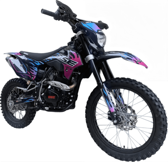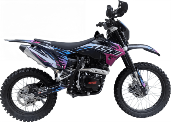 Кроссовый мотоцикл BSE M2 250e идеально сбалансированный, устойчивый, крепкий мотоцикл. Оснащен надежным 250 кубовым Zongshen ZS 177 FMM мощностью 27 лс с водяным охлаждением. Отличные показатели крутящего момента во всем диапазоне оборотов. Система подачи топлива – спортивный карбюратор NIBBI RACING 34. Имеется вентилятор охлаждения. Коробка передач - 6 ступенчатая механическая.M2 уже в заводской комплектации готов к покорению серьезного бездорожья и участию в соревнованиях. Подвеска MOJO c большими ходами имеет полный диапазон регулировок и помогает отрабатывать даже самые жесткие приземления, с лёгкостью "проглатывает" все неровности. Идеальная развесовка и сбалансированность конструкции мотоцикла даёт преимущество при прохождении острых поворотов и крутых подъёмов.На мотоцикле установлено все необходимое для оффроуда: вилка “перевертыш”, литые рычаги задней прогрессии, алюминиевый маятник, прочный задний бугель, “злая” внедорожная резина Kenda. А также: усиленные легкосплавные колёсные диски MOJO, усиленная цепь, защита рук, датчик моточасов, прочные анодированные CNC ступицы, складные СNC рычаги тормоза и сцепления, колесные подшипники NTN, защита коллектора, картера двигателя и тормозных дисков. Комплектуется одинарным либо двойным глушителем. Мощная гидравлическая тормозная система HSК Racing остановит байк в любых условиях.На BSE M2 также можно с комфортном отправиться в продолжительное путешествие благодаря удобному сиденью, широкому спортивному рулю, наличию электростартера и топливному баку на 6.5 литра. C яркой LED фарой головного света можно кататься в ночное время.