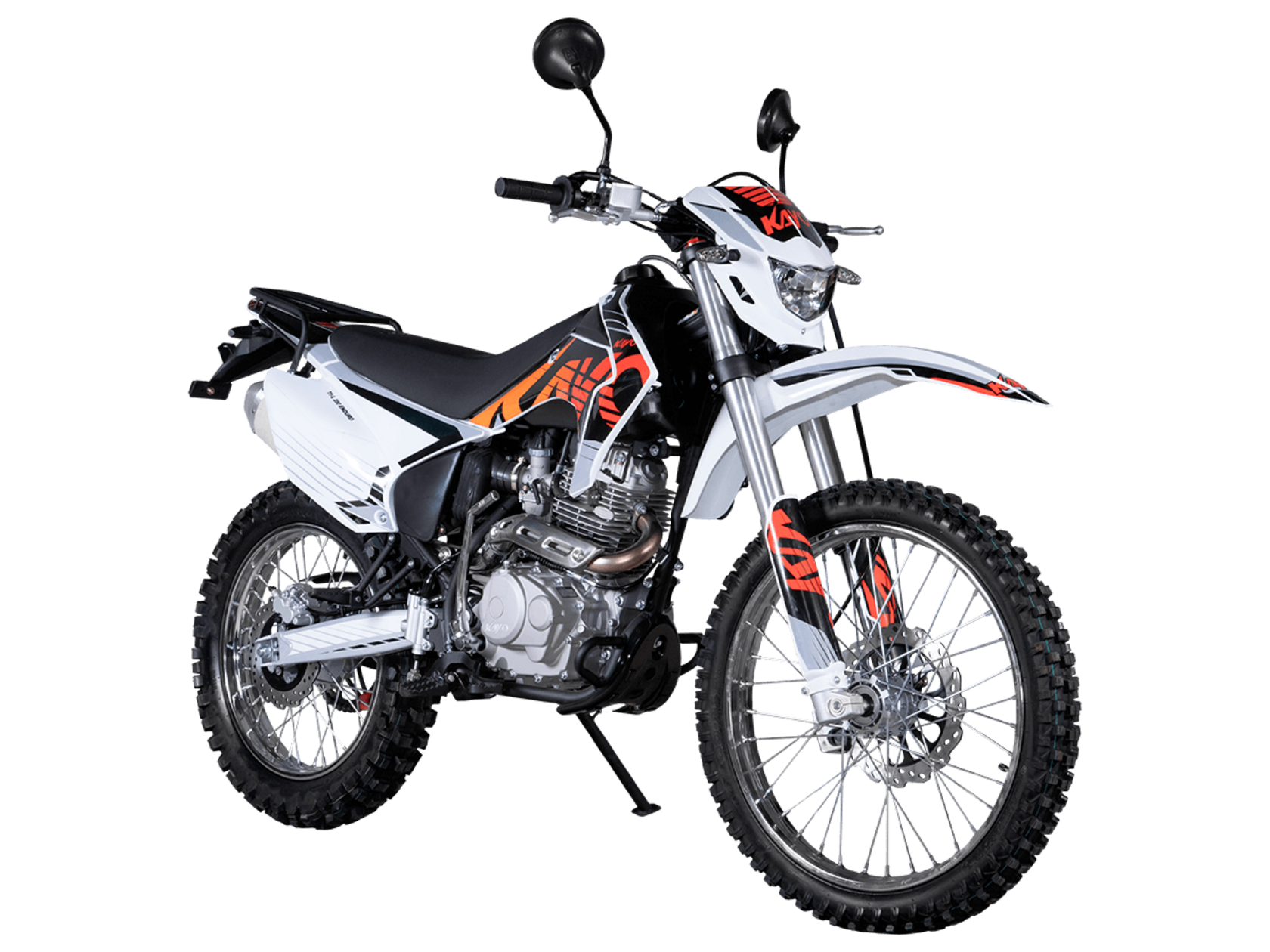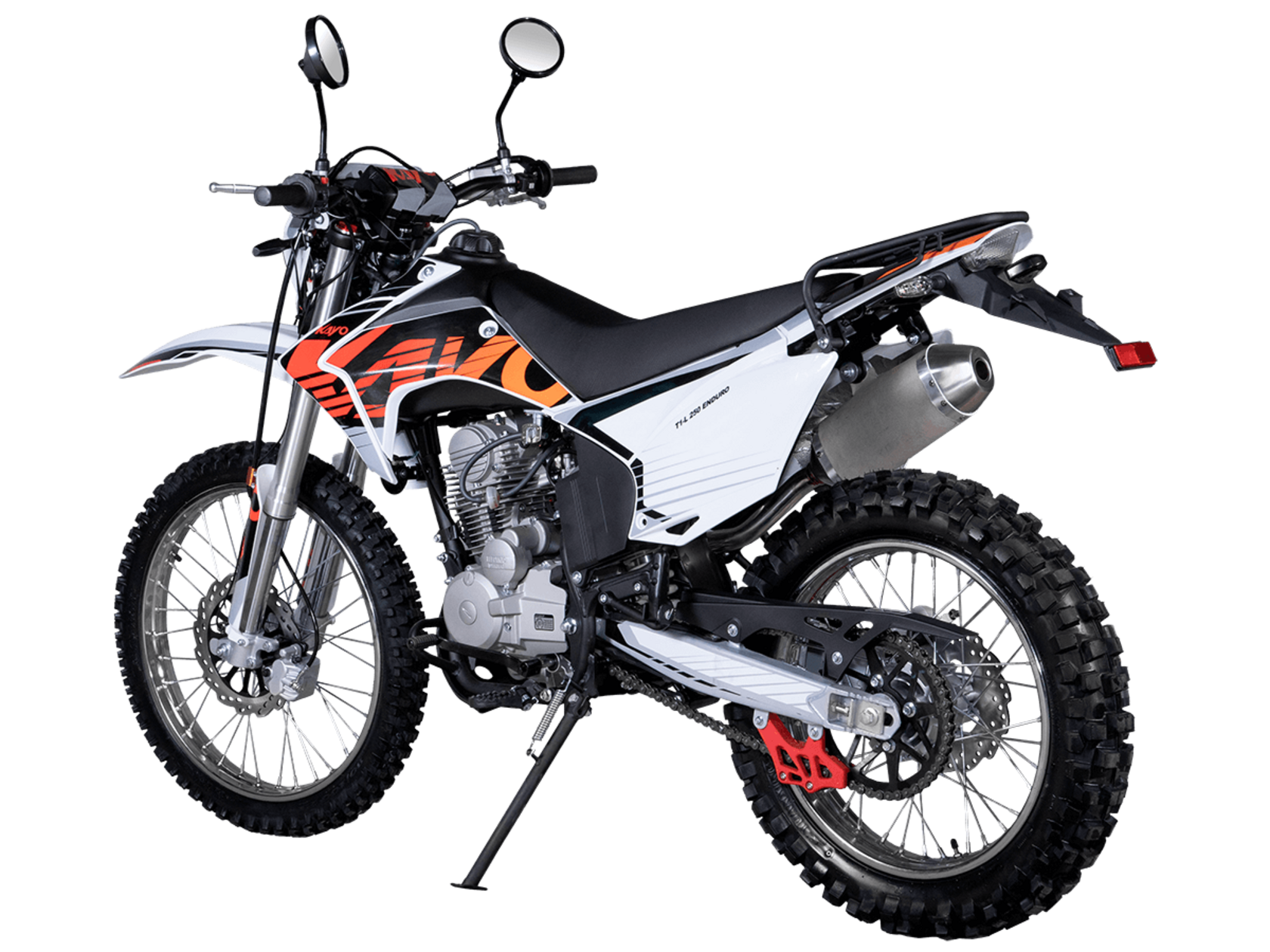 Мотоцикл KAYO T1-L 250 Enduro 21/18 2025 ПТС – облегчённая модель надёжного и производительного эндуро, уже готовая к покорению внедорожных трасс.Оснащён 4-тактным двигателем объёмом 223 см³ с верхним распредвалом и воздушным типом охлаждения. Способен развивать мощность в 16,32 л.с. при 8500 об/мин, а максимальный крутящий момент 17,5 Нм достигается при 6500 об/мин. За подачу топлива отвечает карбюратор PE30. Он обеспечивает топливную экономность и бесперебойную работу двигателя даже в самых жёстких условиях. Соотношение диаметра цилиндра и хода поршня 65,5x62,2. Степень сжатия 9,6:1. Запуск двигателя осуществляется с помощью электростартера или кикстартера. Тип зажигания CDI. Снизу установлена пластиковая защита двигателя.Механическая коробка передач имеет 5 ступеней. Привод цепной. Объём топливного бака 9 литров.На мотоцикл установлены спицованные колёса с алюминиевыми ободами и ступицами. Обуты во внедорожные покрышки YUANXING 80/100-21 и 110/100-18.Длина подвески спереди 830 мм, длина задней подвески 370 мм. Задняя подвеска оснащена прогрессией. Траверсы выполнены из литого алюминия, а прогрессия – из стали. За торможение отвечают дисковые гидравлические тормоза.Прочная рама и маятник выполнены из стали. Мотоцикл имеет ПТС и оснащён всем необходимым для поездок по дорогам общего пользования: галогеновая фара, диодные поворотники, диодный стоп-сигнал, звуковой сигнал, цифровая приборная панель, зеркала заднего вида.Для управления установлен руль переменного сечения 28 мм Fatbar со стандартными рычагами сцепления и тормоза. Имеется платформа для перевозки грузов и дополнительные подножки для поездок с пассажиром.Габариты мотоцикла 2100х810х1180 мм, вес 115 кг. Клиренс 300 мм, колёсная база 1400 мм, высота по седлу 890 мм.