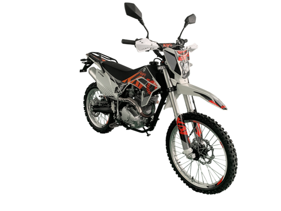 KAYO T2 250 MX - одна из популярных моделей в линейке мототехники Kayo, которая унаследовала все лучшие черты легендарного KAYO К1. Этот доступный внедорожный мотоцикл отличают высокая надежность, легкость в управлении и привлекательный дизайн. Кроме нового двигателя многоцелевой байк получил полный комплект оборудования, необходимого мототехнике для передвижения по дорогам общего пользования. Данная модель собрана на проверенной временем и тысячами пользователей полудуплексной раме, для производства которой используются марки стали с лучшими характеристиками. В раме мотоцикла установлен мотор ZONGSHEN ZS169FMM - одноцилиндровый 4-тактник воздушного охлаждения объемом 233 кубических сантиметра с 5-ступенчатой коробкой передач. Достаточно производительный и надежный мотор, показатели максимальной мощности которого составляют 16,5 л.с. на 7000 об/мин, а пиковый крутящий момент равен 17 Нм при 6000 об/мин.За питание двигателя отвечает карбюратор NIBBI PE30 производства бренда спортивных мотокомплектующих Nibbi Racing. Система запуска двигателя продублирована в двух вариантах – при помощи кнопки электростартера или при помощи рычага кик-стартера.Набор компонентов подвески – вполне традиционный для техники этого класса. Спереди в траверсах стоят амортизаторы телескопической вилки перевернутого типа длиной 800 миллиметров, сзади стальной маятник крепится к моноамортизатору длиной 360 миллиметров. Степень сжатия пружины заднего амортизатора можно отрегулировать, другие настройки отсутствуют, однако подвеска готова продуктивно решать большинство эксплуатационных задач.В комплект дополнительного оборудования мотоцикла входят светодиодная фара, указатели поворотов с гибкими кронштейнами крепления, задний габарит, стоп-сигнал и приборная панель с ЖК-экраном с подсветкой. Мотоциклы KAYO T2 250 MX рассчитаны как на внедорожное использование – это может быть кантри-кросс, поездки по легкому бездорожью, так и на эксплуатацию на дорогах общего пользования.