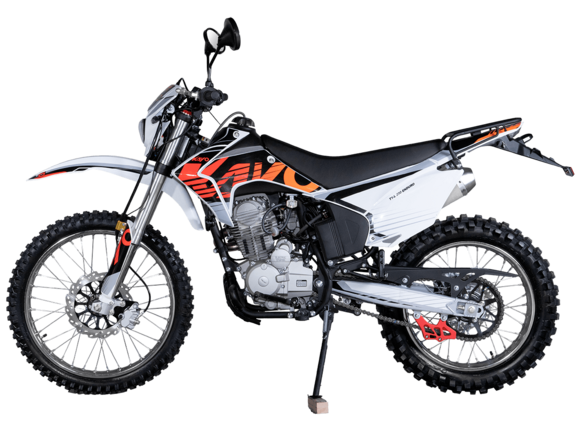 Кроссовый мотоцикл KAYO T4 300 Enduro PR 2024 модельного года – это надёжный, производительный и компактный кроссовый мотоцикл, который идеально подходит для любителей экстрима и езды по бездорожью. Модель обладает высокими характеристиками, производительным двигателем и прочной конструкцией, которая позволяет ей справляться с непростыми условиями маршрутов как на кроссовых трассах, так и в хард-эндуро.Одноцилиндровый 4-тактный двигатель воздушного охлаждения ZONGSHEN ZS175FMM-5 (PR300) с биг бором и балансирным валом имеет объём 271 см3 и выдаёт 24 л.с., что позволяет развивать большую скорость и с лёгкостью преодолевать трассы со сложным рельефом. Карбюратор NIBBI PE30 обеспечивает бесперебойную работу техники в самых жестких условиях эксплуатации, простоту и лёгкость в обслуживании, а также неприхотливость к качеству топлива. Двигатель оснащён 5-ступенчатой механической коробкой передач с классической схемой “1-N-2-3-4-5”.Усиленная рама фирменной разработки выполнена из хром-молибденового сплава, и в сочетании с регулируемой телескопической вилкой перевёрнутого типа длиной 880 мм и регулируемым моноамортизатором 450 мм с прогрессией, позволяют эффективно амортизировать удары при езде по неровностям и препятствиям на любых трассах. Оба компонента подвески произведены фирмой KKE. Мотоцикл оснащён классическими спицованными колёсами диаметром 18 дюймов сзади и 21 дюйм спереди. Высококачественная износостойкая резина с высокими грунтозацепами отлично держит дорогу на различных типах покрытия и в самых разных поворотах. Эффективное и безопасное замедление с любых скоростей обеспечивают гидравлические дисковые тормоза.Байк оснащён защитой для кистей, задним багажником и имеет систему запуска двигателя при помощи кнопки электростартера или при помощи рычага кик-стартера. Сиденье эргономичной формы покрыто антискользящим материалом. Данная модель укомплектована очень яркой линзованной светодиодной фарой, которая даёт возможность кататься в тёмное время суток.Благодаря наличию ПТС и всему необходимому комплекту светотехники, мотоцикл можно ставить на учёт в ГИБДД и ездить по дорогам общего пользования. KAYO T4 300 Enduro – это надёжный, производительный и мощный кроссовый мотоцикл с современным агрессивным дизайном для тех, кто не ищет лёгких путей.