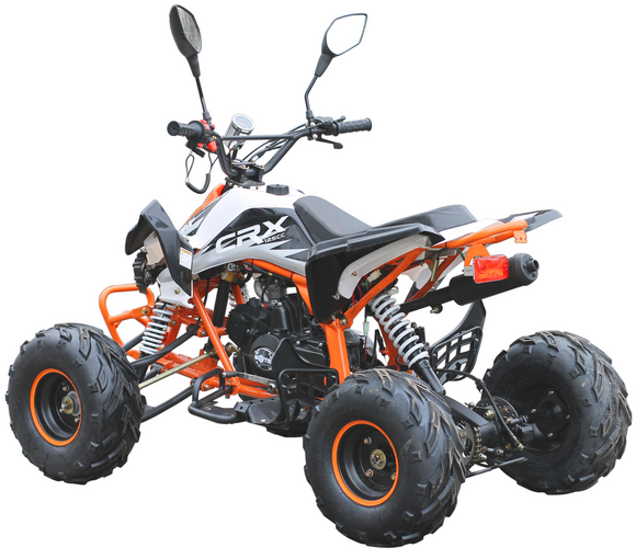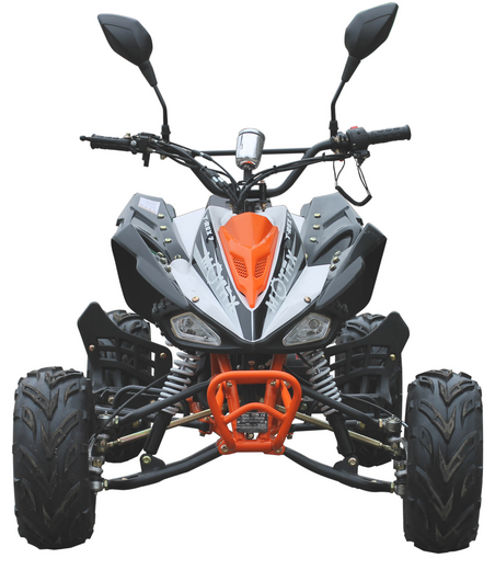 Подростковый квадроцикл MOTAX ATV Grizlik Premium одростковый квадроцикл в утилитарном дизайне, на больших 8-дюймовых колёсах с хорошими грунтозацепами. Подходит для детей и подростков от 6 до 16 лет.Квадроцикл оборудован тяговитым 4-х тактным двигателем, бесступенчатой полуавтоматической трансмиссией с одной передачей вперёд и передачей заднего хода. Также квадроцикл имеет богатую базовую комплектацию: он оборудован электрическим стартером, пультом дистанционного глушения и запуска двигателя, механическим ограничителем скорости, усиленным передним и задним багажником, лебедкой, комфортными гидравлическими амортизаторами, яркими передними светодиодными фарами и светодиодным задним фонарем со стоп сигналом, металлическим топливным баком, усиленной 428 приводной цепью. Передняя подвеска на независимых рычагах со съемными шаровыми опорами, что делает его очень комфортным и ремонтопригодным.Двигатель 125 кубов 4-х тактный.Мощность 10 л.с.Максимальная скорость 65 км/ч.Максимальная нагрузка 140 кг.Передние тормоза дисковыеЗадние тормоза дисковые гидравлические.