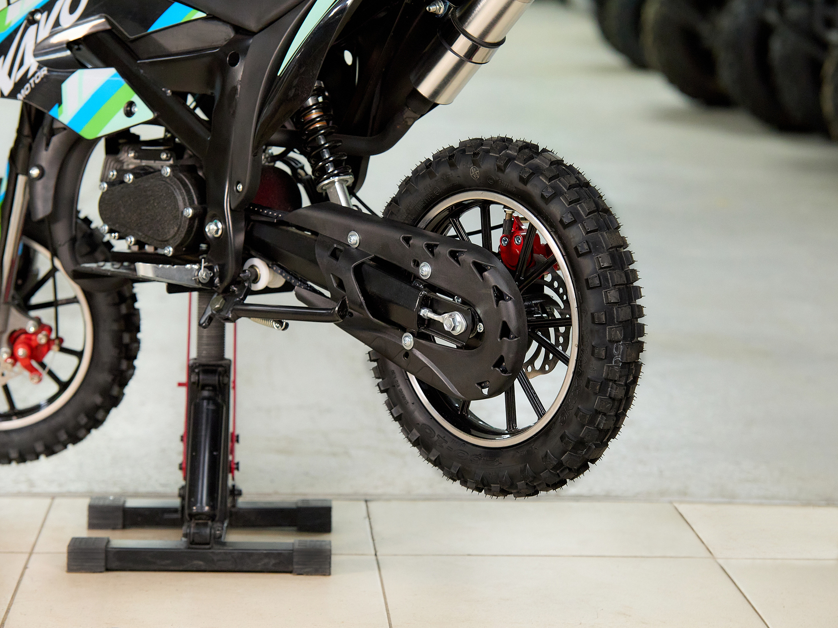 • Комплектуется 10-дюймовыми колёсами на литых алюминиевых дисках, “обутых” в кроссовую моторезину;