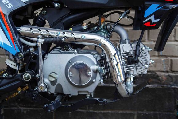 Представляем Вашему вниманию питбайк от молодого российского бренда Full Crew. Модель получила название FC125 17/14. В ней собраны все ключевые моменты для покорения сердца питбайкера. Крепкая стальная рама, дисковые гидравлические тормоза, надежный и проверенный временем двигатель YX 125 с механической четырехступенчатой коробкой передач и фара. А самый огромный плюс – это демократичная цена и наличие электростартера на питбайке Full Crew FC125 17/14.