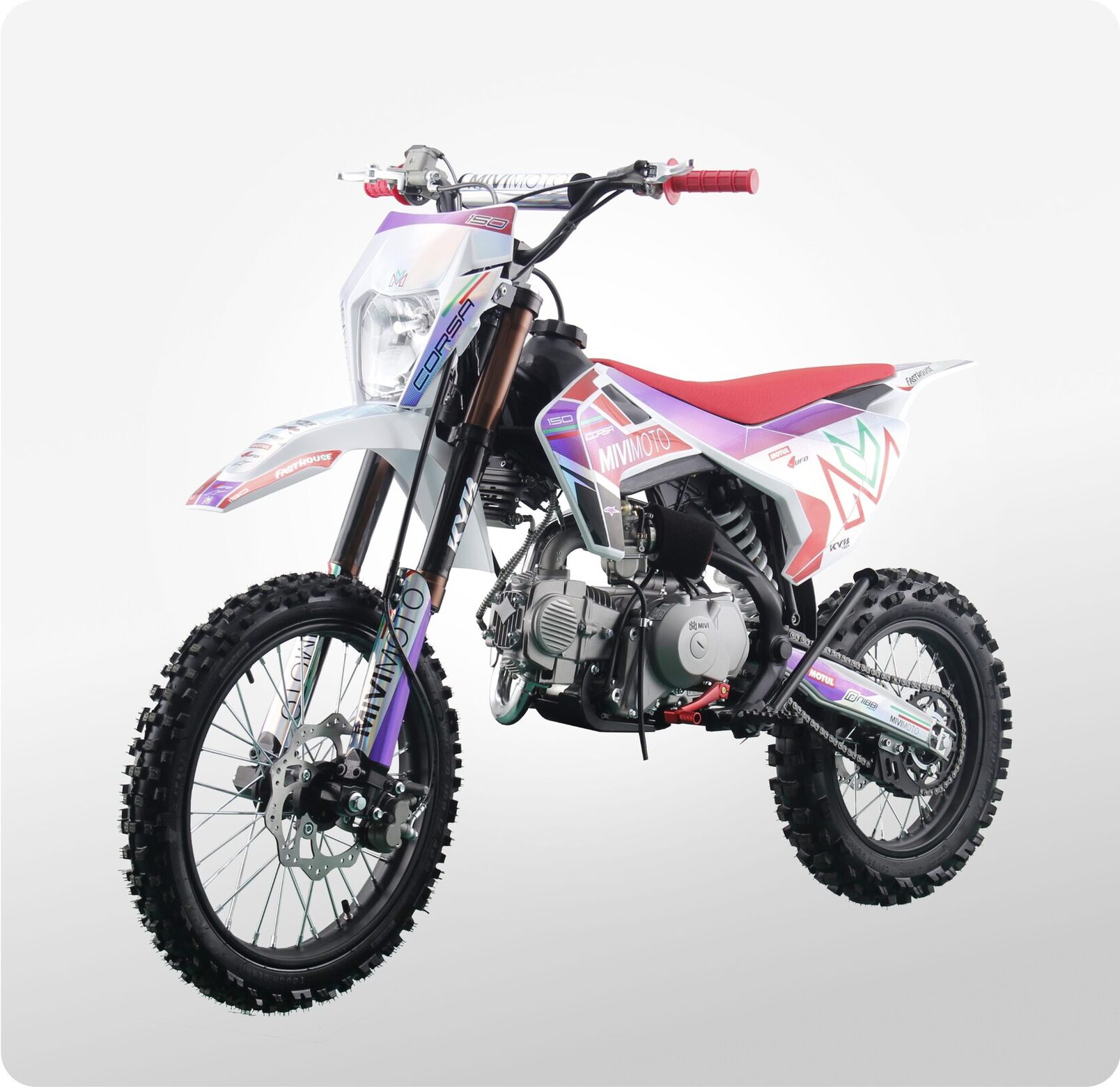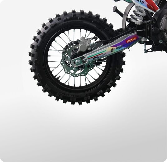 MIVIMOTO CORSA 150 — настоящий байк для тех, кто не боится скорости и любит преодолевать препятствия. Мощный 150-кубовый двигатель выдает 12 лошадиных сил, обеспечивая динамичный разгон и плавный ход как по дорогам, так и по бездорожью.- Четырехтактный двигатель сочетает в себе мощность и надежность, а также дополнительно оснащен масляным радиатором для более эффективного охлаждения при больших нагрузках. Карбюратор Nibbi Racing PE22 обеспечивает стабильную подачу топлива, а электростартер делает запуск легким и удобным.- Прочная стальная рама. Конструкция выдерживает серьезные нагрузки, сохраняя устойчивость как при активной езде, так и в экстремальных условиях.- Спереди питбайк оснащен перевернутой телескопической вилкой KYB tech, сзади — моноамортизатором с регулируемой жесткостью. Конфигурация обеспечивает плавный ход, хорошую отработку неровностей и комфорт при прыжках и резких маневрах.- Тормоза. Фирменные гидравлические дисковые тормоза HSK на обоих колесах обеспечивают точное и быстрое торможение в экстремальных условиях.- Питбайк оснащен светодиодной фарой, что позволит использовать его в темное время суток, и сиденьем из противоскользящего материала.