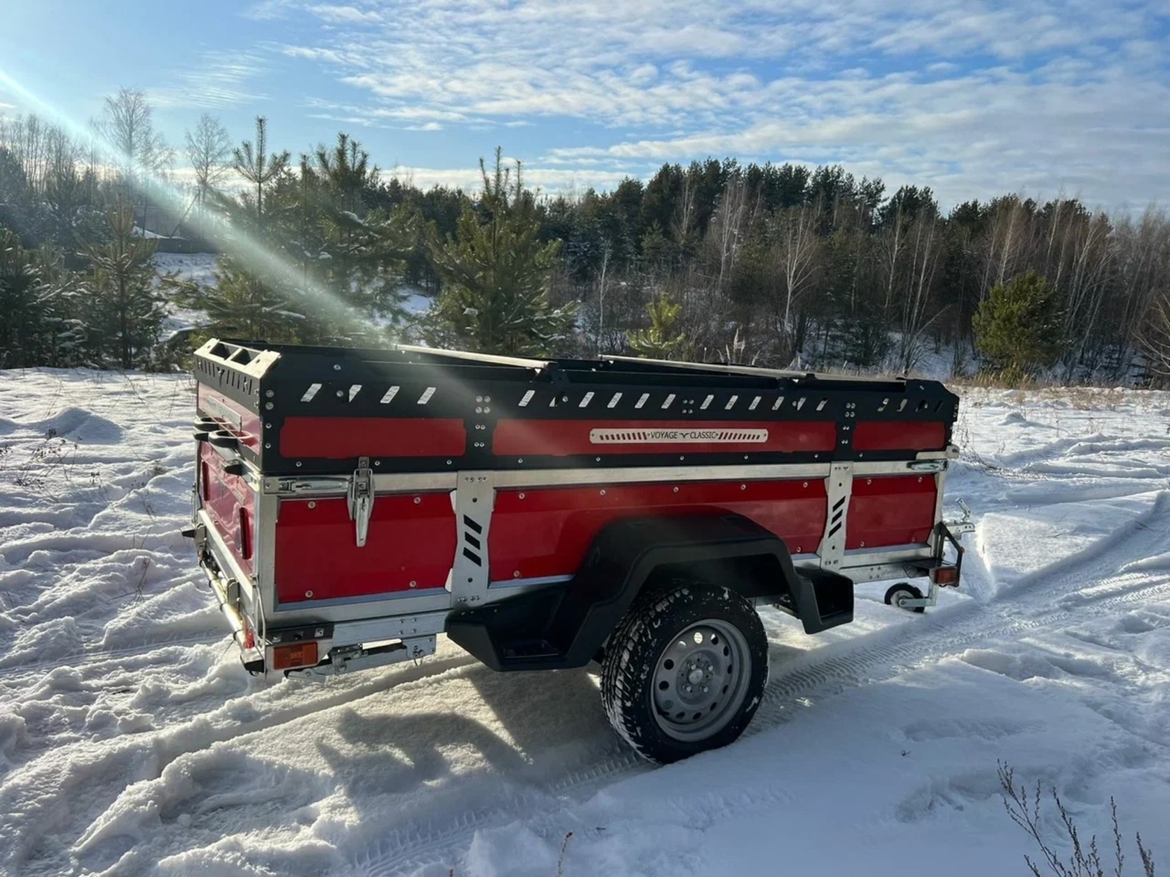 Прицеп VOYAGE Classic 2,5 Бортовой, туристическая крышка с багажником, высота внутри 530 (ш. 1,3; д. 2,5)